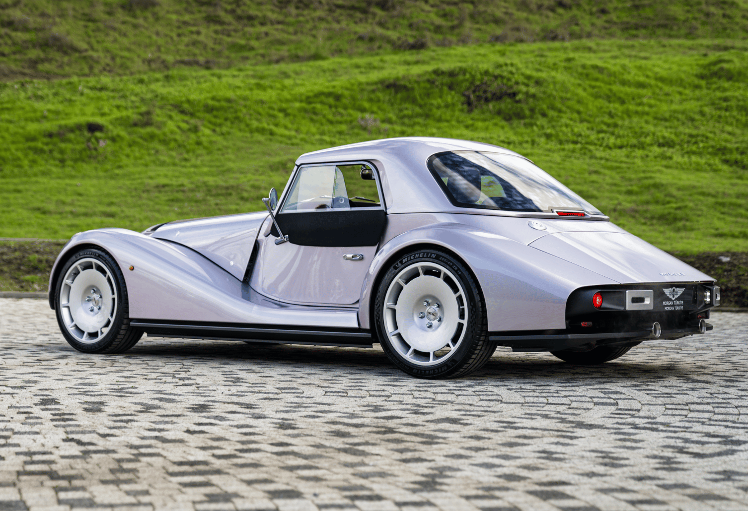 El işçiliğiyle şekillendirilen akıcı alüminyum gövde panelleri, saten gri şasi detayları, ön splitter ve arka difüzör gibi teknik unsurlarla bilinçli bir kontrast oluşturuyor. Bu yaklaşım, Morgan’ın “21. Yüzyıl Coachbuilding” felsefesini güçlü biçimde yansıtıyor.